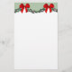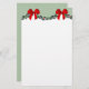 Festive holiday writing paper, done in white, with a light sage green header bordered with a garland of holly leaves and bright red satin looking bows. Customise to add additional text or use on your own printer at home. Lovely paper for your annual Christmas letter.