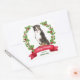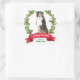 On these Holiday correspondence stickers, a portrait of a Bernese Mountain Dog is surrounded by a red berry holly wreath. At the bottom is a red banner with your custom Christmas greeting, and your signature is in green beneath it.