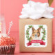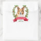 Holly Banner Corgi Dog Portrait Christmas Square Sticker