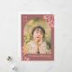 Your custom photo in arch shape with dusty pink background and pink holly berry designs at top right and bottom left with pink text.