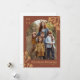 Your custom photo in arch shape with terracotta background and goldenrod holly berry designs at top right and bottom left with goldenrod text.