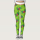 Holly Berries with Snow and Stars on Bright Green Leggings