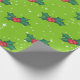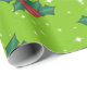 Holly Berries with Snow and Stars on Bright Green Wrapping Paper
