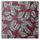 Holly berry, gray leaves on dark red tile
