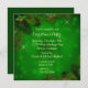 Here is a pretty holiday party invitation with your party information in gold at the centre. The top and bottom have a border of green boughs and red holly berries. A few gold stars sparkle in the background. The images and text are placed on a gradient green background with a subtle star pattern. The back of the invitation is solid matching green. You may easily adapt this invitation for a corporation or business. Bright and colourful! If you'd like to add additional text to the back, choose Customise It. *Thanks to Scrap and Tubes for clip art used in this design.