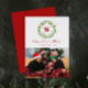 An elegant wreath of holly and mistletoe accents your family monogram on this single photo Christmas holiday card in classic red and green. Add more photos or text to the backer of the card for greater personalisation options and make your card truly one of a kind.