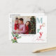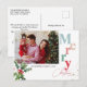 Beautiful pastel colour Merry Christmas simple and elegant watercolor Holly Branches white Christmas Postcard can personalised with 1 family Photos .