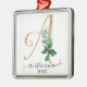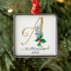 Holly Christmas Gold Glitter Monogram A Family Metal Tree Decoration