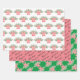 The first design, in this collection, features a white background with a pattern of Holly and Evergreen tied up with a big red bow. The second design has a light red background with the words "Happy Holidays" forming a pattern. The third design has a green background with a mirror image pattern of the Holly and Evergreen with the big red bow.