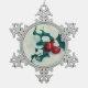 Holly in Snow Snowflake Pewter Christmas Ornament
