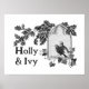 Vintage black and white christmas wall decor with Holly, Ivy and two birds.