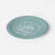Have A Holly Jolly Christmas custom holiday party paper plates. Festive and folksy curly chalk-art style Christmas Holiday design. Whimsical chalkboard style swirly frame with white chalk-art typography on cheerful winter blue background and trendy retro mix of hand-lettered styles, decorated with frosty foliage and holly berries. Add your own personalised greeting or family name to create a unique theme for your holiday table and enjoy with your guests. Perfect for formal festive events and home entertaining. Christmas Typography - Holly Jolly Christmas Collection