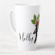 This design features a penguin holding a branch of holly among the words: Holly Jolly. The original humourous animal illustration makes a cute funny and unique Christmas season large latte mug.