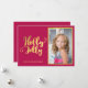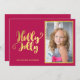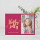Holly Jolly magenta gold calligraphy script photo Holiday Card