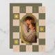 This holiday season, send warm wishes with our Holly Jolly Retro Chequerboard Pattern Arch Photo Christmas Foil Card—the perfect blend of vintage charm and festive cheer! It features a vibrant retro chequerboard design in classic retro holiday colours. Simple retro-inspired chequerboard pattern with snowflakes. The arch photo is framed by a festive modern arch design for a bold, eye-catching look. Design by © Moodthology Papery