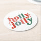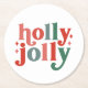Holly Jolly - Retro Holiday Typography Round Paper Coaster
