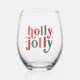 Holly Jolly - Retro Holiday Typography Stemless Wine Glass