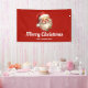 Banner with a joyful illustration of a vintage style Santa Claus with red rosy cheeks. Wearing his classic red Santa hat and his big white beard. A sprig of holly adds to the festive holiday spirit of this design.