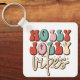 Holly Jolly Vibes Retro Groovy Christmas Holidays Key Ring