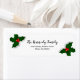 Christmas labels with festive holly leaves and berries.