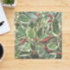 Protect your table top from water marks and stains with this decorative, stone beverage coaster with cork backing that features the photo image of variegated Holly leaves with bright, red berries. A fun, floral design for the holidays! Select your coaster stone style.