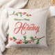 Holly Leaves, Red Berries Christmas Throw Pillow