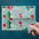This is a delightful Christmas envelope that can be personalised to your liking. It features a charming light blue background adorned with a festive pattern of green holly leaves, red berries, pine branches and yellow stars. The recipient's address is elegantly written in a vibrant red font, adding a touch of warmth to your holiday greetings. This customisable envelope is perfect for sending your heartfelt Christmas wishes to your loved ones. Make your holiday mailings extra special with this beautifully designed envelope! 🎄💌