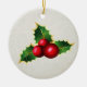 Brighten up your Christmas tree and give a touch of warmth and excitement of the holidays to your Christmas decoration with this simple yet charming circle ceramic Christmas ornament. Featuring a lovely Christmas Holly Mistletoe print, set against an Ivory off-white texture background, this charming ornament is a perfect way to commemorate the holiday season with your family and makes a great gift for all of your loved ones. Personalise it with your own wording.