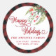 Holly Modern plaid red script Happy Holidays Classic Round Sticker