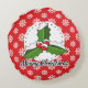 Holly on Red White Snowflakes Pattern - Merry Xmas Round Cushion