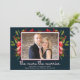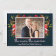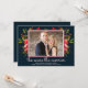 Photo Christmas Pregnancy Announcement Cards. Expecting parents! Modern white hand lettered typography script "the more the merrier" card to share your happy news with family and friends in the winter holiday season. Features christmas watercolor holly berry branches red floral arrangement on deep navy blue background. You can personalise the design by replacing the texts and horizontal photo. #3348 If you need help or matching items, please contact to me!