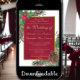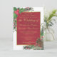 This beautiful wedding invitation features a festive holiday design with hand painted watercolor holly leaves, berries, pine branches, and pine cones surrounding a golden faux foil frame on a marbled crimson red background. This invitation features fancy script lettering and formal wording where the wedding is being hosted by the parents of the bride. Perfect for a Christmas or winter themed wedding!
