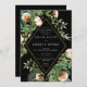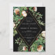 Elegant winter wedding invitation features a modern gold diamond frame surrounded by holly and pine with white cotton flowers. Red berries add a pop of festive colour. There is a winter botanical sprig on the back of the invitation. The black background gives it a very elegant and contemporary vibe. This wedding invitation is part of the Holly and Pine White Floral Collection. If you need help finding coordinating items, feel free to message me. I'm Nelda and I'd love to help.