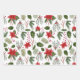Holly & Poinsettia Christmas Gift Wrap - 3 Sheets