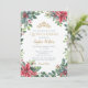 Holly Poinsettias Gold Princess Tiara Quinceañera Invitation