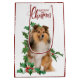 Holly Red Berry Shetland Sheepdog Christmas Medium Gift Bag