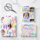 HOLLY Script Rainbow On White 4 Photo Christmas Wr Wrapping Paper Sheet
