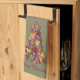 Decorate for the holidays with this tea towel with a Victorian style Christmas design featuring a tree made up of holly leaves in various non-traditional colours adorned with red, green and yellow apples, winter blooming pansies in both cool and warm hues and red, pink and purple balls of various sizes.