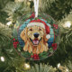 Holly Wreath Golden Retriever Dog Christmas Glass Tree Decoration