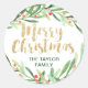 These holly wreath merry christmas stickers are perfect for a classic holiday card or gift. The design features a watercolor green wreath with red berries and an elegant faux gold glitter font. Personalise the stickers with your name.