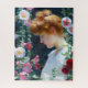 Puzzle features 'Hollyhocks and Sunlight' (1902) by Charles Courtney Curran. Originally an oil-on-canvas painting, the artwork features a red-haired woman among red, pink, and white hollyhock flowers in a Valentine colour scheme. The young woman's ginger hair is in an updo, and she wears a white dress.