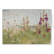© Cheri Blum / Wild Apple. Hollyhocks by the sea, along with green grass. A blue sky can be seen on the background.