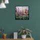 Gorgeous vintage Art Nouveau Tiffany Stained Glass Floral Window Reproduction depicted the beauty of a field of hollyhocks in romantic purple tone against sunset sky is on this poster. This art piece would look great when framed in the home, office, bar, cafe, pub or restaurant!