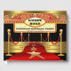 Hollywood birthday party guest book with red and gold red carpet, gold stairs and red and gold marquis. You can easily customise this elegant Hollywood guest book for your event by simply adding the text of your choice in the font style you prefer.
