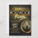 Film reel is a very iconic symbol of Hollywood, which is the accent design of the invitation. Gold texture is used on the reel to match the black marble background of the invitation.