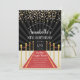 Cute Hollywood theme kids birthday party invitations are perfect for little movie star's moment in the spotlight! Invitations feature a red carpet and velvet rope design with your birthday party details in white lettering, topped with blush and gold confetti.