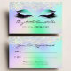 This glamorous modern business card features a pair of long-lashed eyes adorned with faux glitter blue-green and purple eye shadow and lined with sparkling diamonds on a faux holographic background image in purple and green. A sprinkling a faux glitter decorates the top edge of the card. Personalize it with your name in black handwriting-style script and business information in black sans serif font. On the reverse, the words "your next appointment" appear in handwriting script, along with spaces for the date and time. Edit the italic text at the bottom with additional policies or information for your clients or customers.