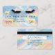 Be a true Lash Lady with this holograph modern credit card styled business card with lashes and unicorn colours with dripping effect and your logo added! Ideal for small business, boutiques, lashes, beauty industry....