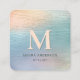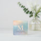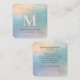 Holographic Brushed Teal Modern Monogram Elegant Square Business Card