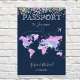 Modern and unique wedding Invitation Wedding Destination, like passport with holographic world map